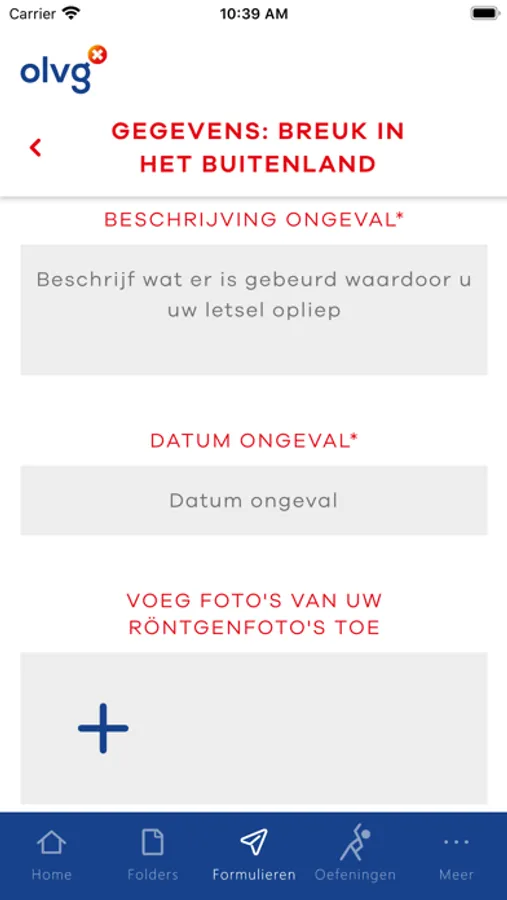 Daarnaast biedt de app de mogelijkheid een contactformulier in te vullen. Dit kunt u bijvoorbeeld gebruiken wanneer u in het buitenland een breuk oploopt en advies wil over een behandeling, of bijvoorbeeld om een foto van een wond te versturen zodat er op afstand met u meegekeken kan worden.