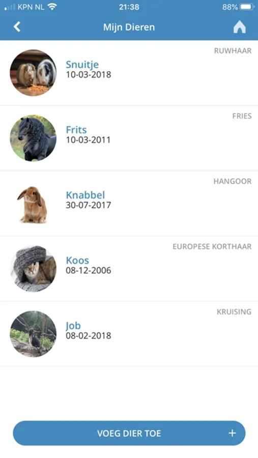 - Een overzicht van de gegevens van uw huisdier(en)