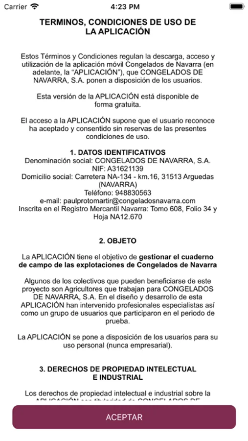 Esta app está dirigida a los proveedores de Congelados de Navarra. A los cuales ayuda en el mantenimiento de un registro actualizado de todas las actividades que se realizan dentro de sus explotaciones.