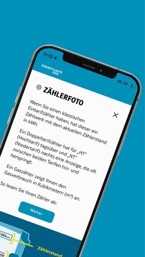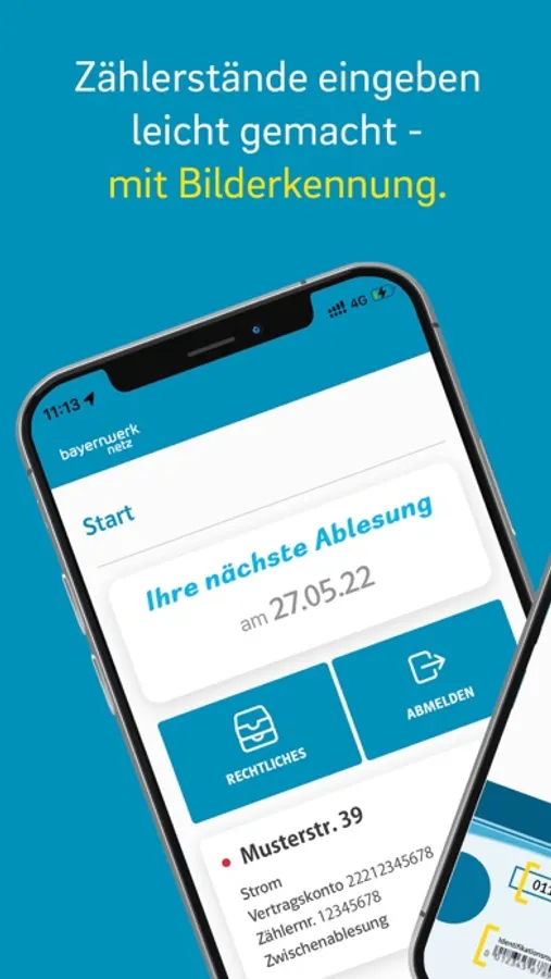Mit der App können Sie den erforderlichen Zählerstand manuell oder über die OCR Erkennung übermitteln.