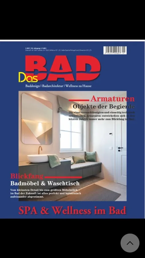 Die Premiumpublikation „Das Bad“ ist nunmehr seit über 32 Jahren ein fester Bestandteil der europäischen Medienlandschaft. Die ersten Jahre mitgezählt, in denen das Medium unter dem Namen „Bad & Küche“ publiziert wurde, kommen stolze 36 Jahre Erfahrung Rund um das Bad zusammen. „Das Bad“ ist somit eines der ältesten Special-Interest-Magazine in diesem Segment: das große, meinungsbildende Trendmagazin Rund um Bad & Wellness. Im Jahr der Weltmesse ISH in Frankfurt gibt es eine Sonderausgabe „edition Das Bad Badplanung“