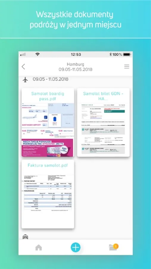 + Dostęp do dokumentów podróży, takich jak: bilety, potwierdzenia rezerwacji, karty pokładowe, vouchery hotelowe, polisy.