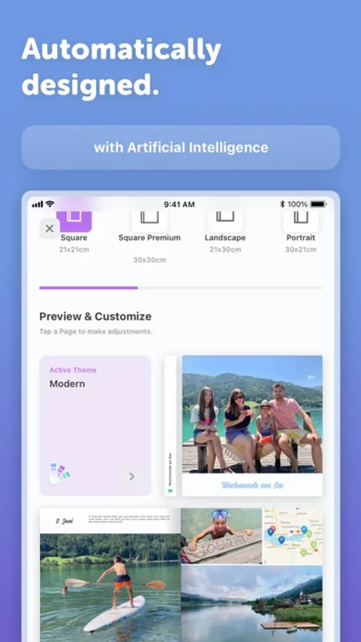Journi Print is like hiring a designer! It designs a photo book in seconds exactly the way you would have done. Our smart algorithm can find the best layouts for 1200 photos in just 34 seconds. Save time and money and start your photo book today because you already did the work when you took the photos.
