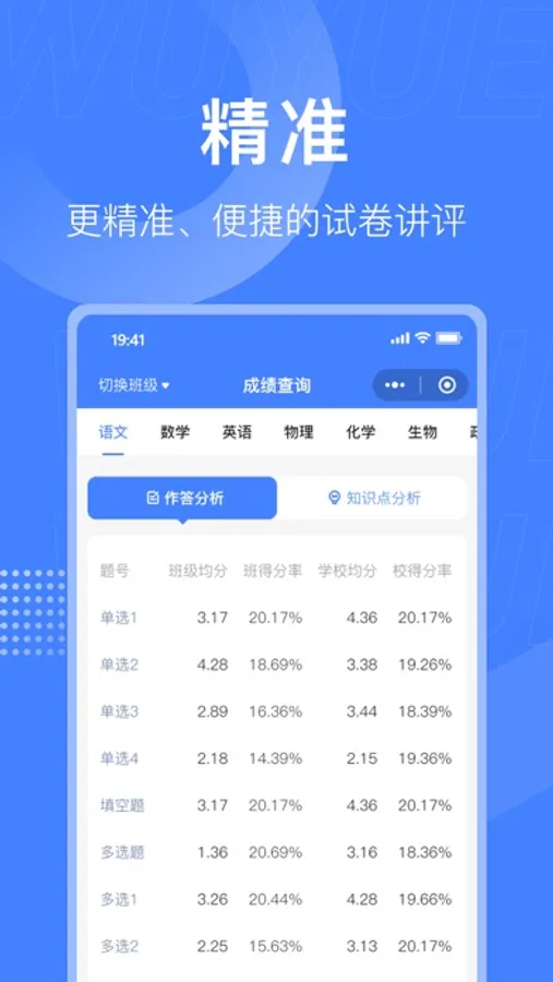 更高效舒适的阅卷体验,更全面维多的数据分析,更精准便捷的试卷讲评。
