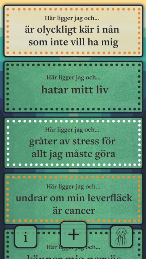Här ligger jag... är en ångest-app där du kan dela med dig hur du känner och få reda på om det finns andra som känner likadant, precis nu, över hela Sverige.