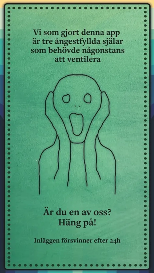 Appen är skapad av tre ångestfyllda själar, som var trötta på att känna sig ensamma, och är en del av Den Andra Sidan (www.denandrasidan.se). Projektet är ideellt och har skapats i samarbete med Skandia Idéer för livet och Allmänna Arvsfonden.