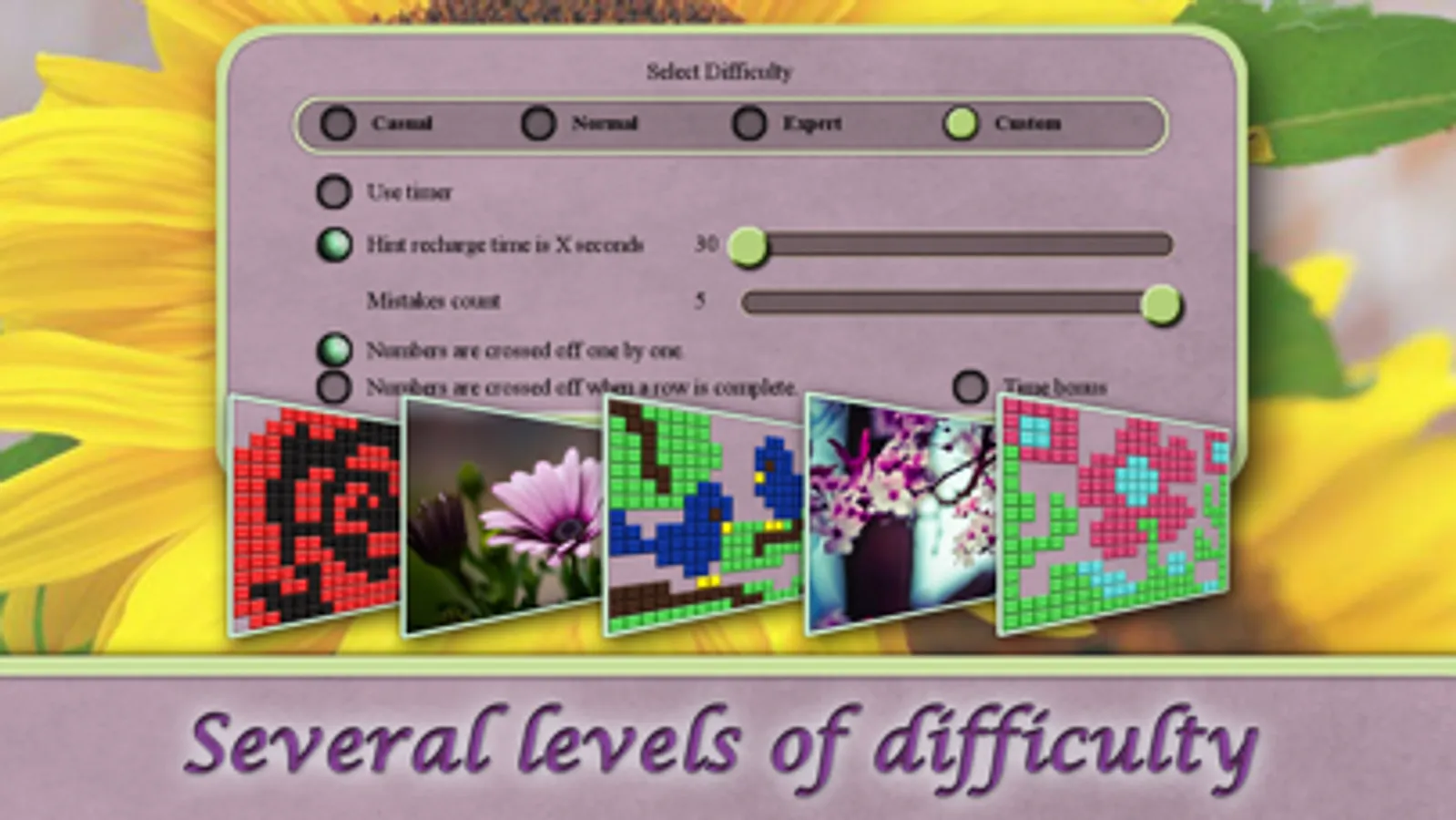 Flowers Mosaics is a beautifully crafted puzzle game full of challenging mosaic puzzles with a botanical theme. Enjoy colorful flower backgrounds and tantilizing layouts while playing at your own pace. Relax to the soothing soundtrack as you immerse yourself in mosaics bliss.