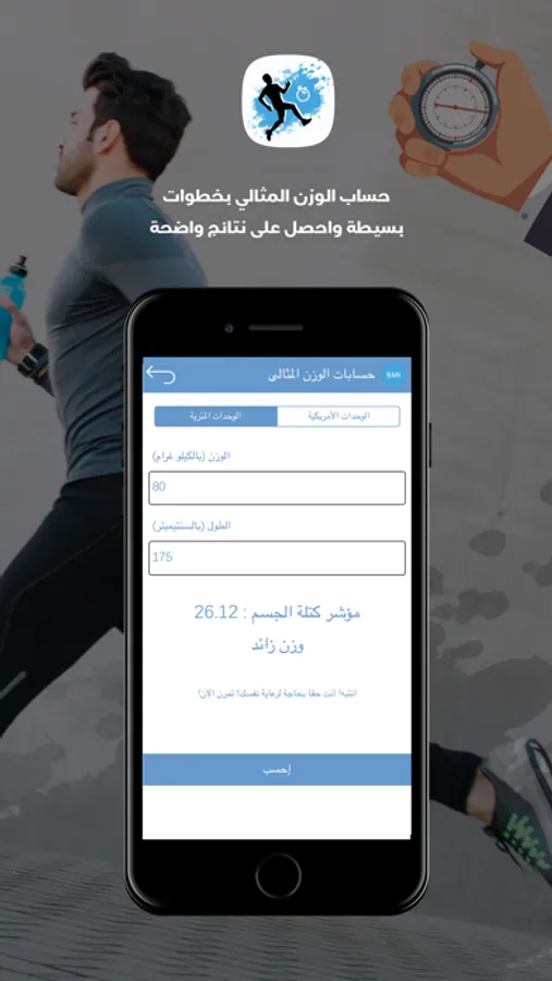 يرشدك التطبيق لافضل الحلول بعد قياس مؤشر الكتلة