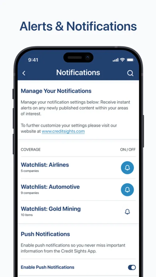 The CreditSights Mobile app is designed to help you stay connected with the market insights that drive your day. Through your mobile phone or tablet, you can now access our independent credit research and comprehensive market insights to make timely, well-informed decisions and better manage risk.