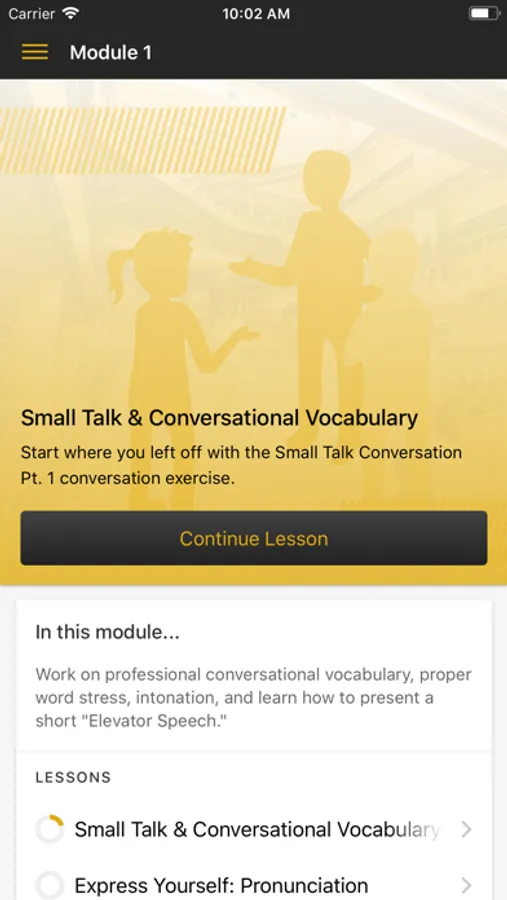 The Speak English Professionally app is designed to provide on-the-go, mobile English instruction for non-native speakers. It provides users with a guided, self-paced and individualized language learning experience and will help prepare learners for interviewing, amongst other social scenarios conducted primarily in English.
