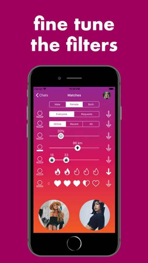 Unlimited customisability: filter, sort, and label by: gender, chat rating, online status, face similarity, location, age, and more