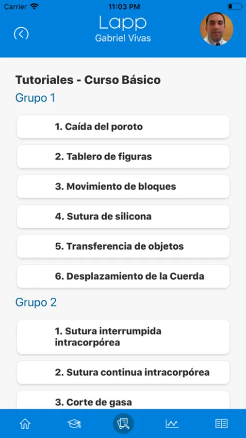 1. Observar videos tutoriales de ejercicios de laparoscopia básica y avanzada, con técnica estandarizada a nivel mundial.