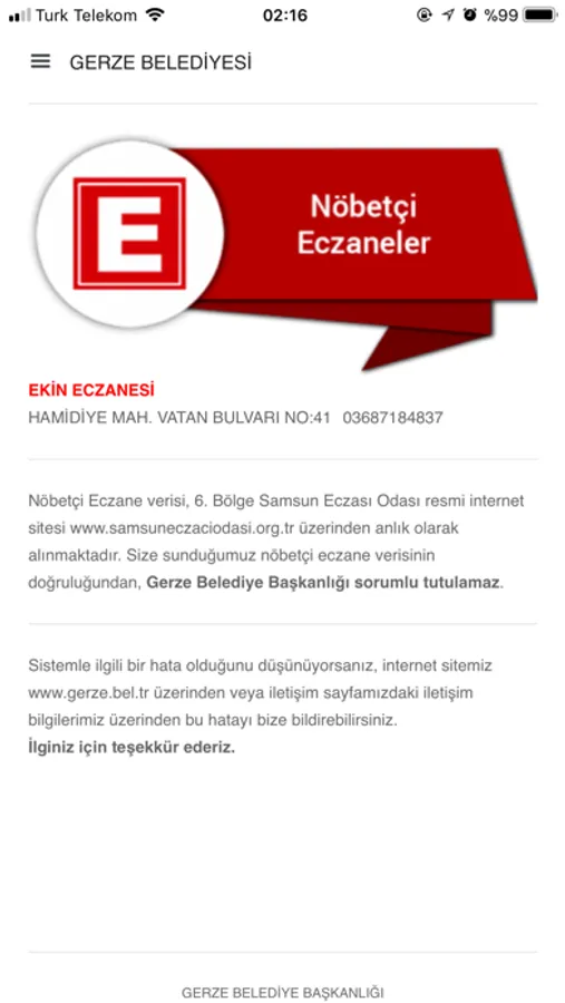 Nöbetçi eczaneler uygulama içerisine eklendi.