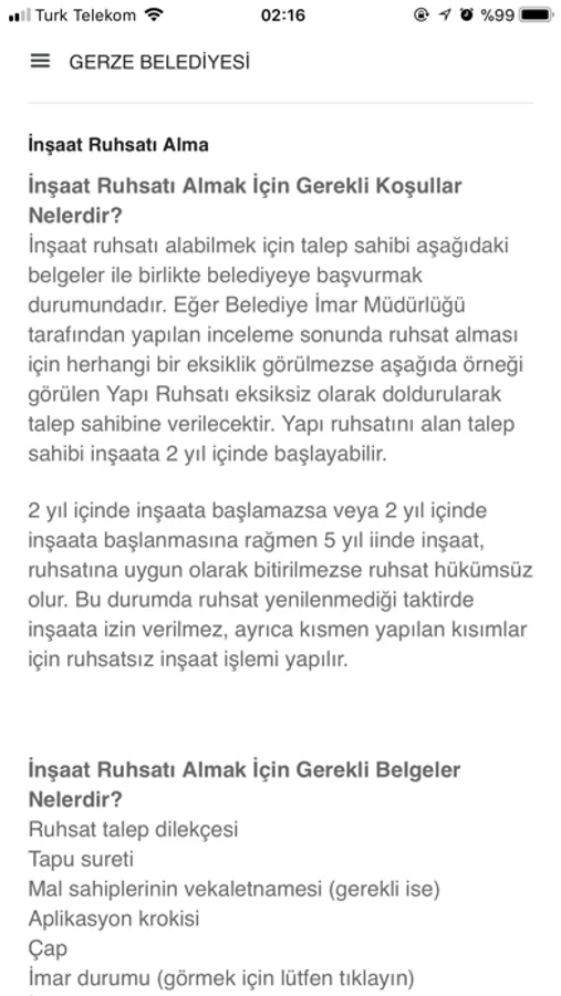 Hizmet rehberi gibi yardımcı bağlantılar uygulama içerisine eklendi.