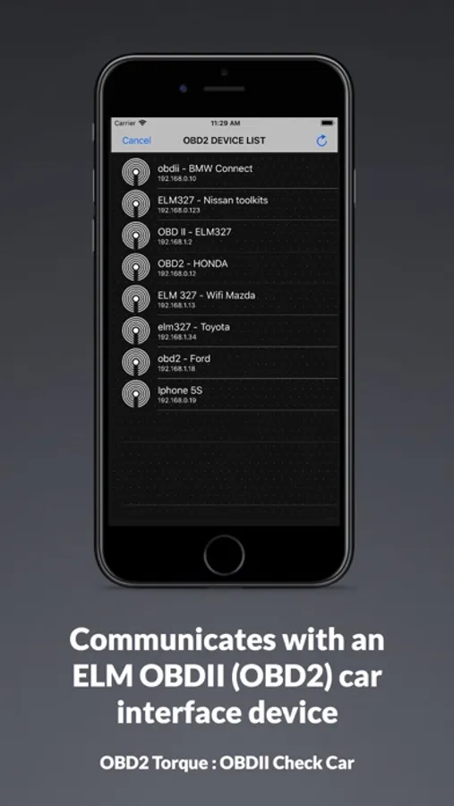 3. Launch your App. Click "Settings" for scan list OBD2 device and select correct your OBD device for diagnostics. (default is 192.168.0.10 or 192.168.0.123)