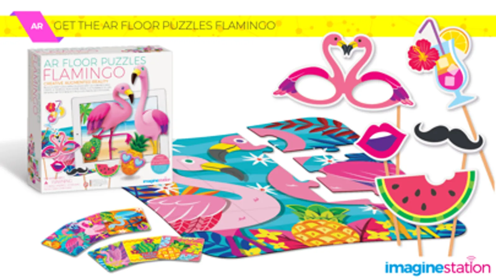 - Complete the floor puzzles in the AR Floor Puzzles Flamingo kit