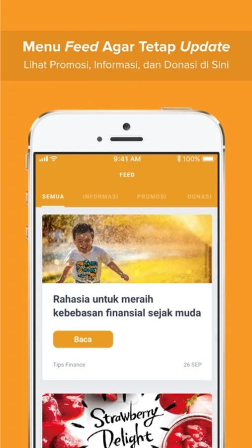 - Feed: Menu untuk melihat informasi, promosi, dan donasi yang ter-update.