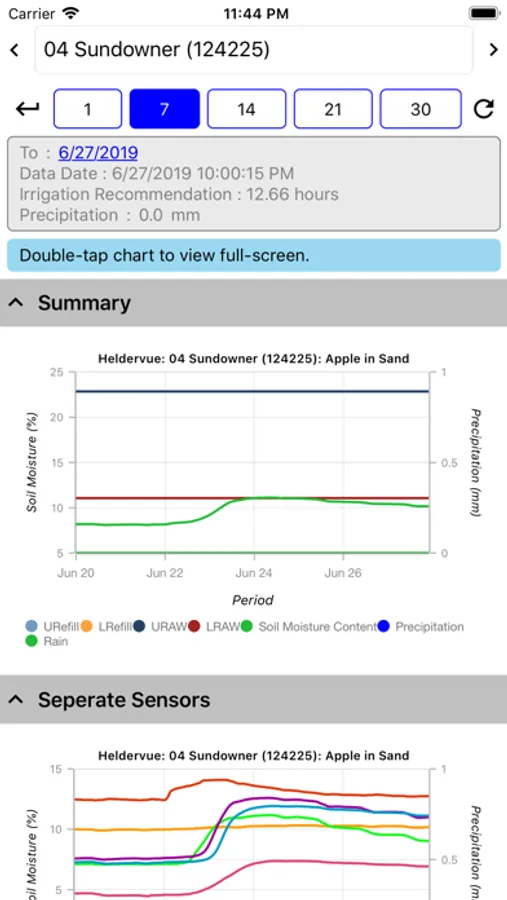 A mobile application which allow users on the AquaCheckWEB system to view AquaCheck Soil Moisture Probe data. Soil moisture data is available in graphs and tables. The mobile application also calculates an Irrigation Recommendation which tells the user the amount of irrigation necessary to keep the moisture in the soil at optimal levels.