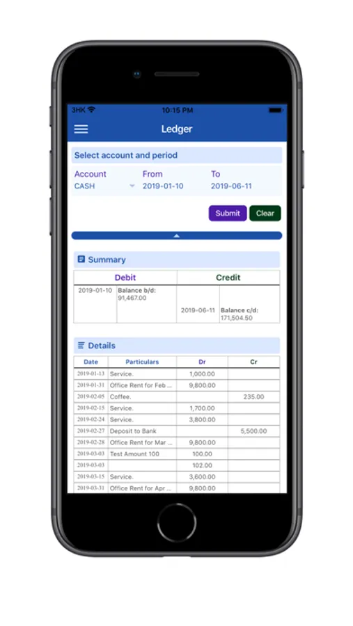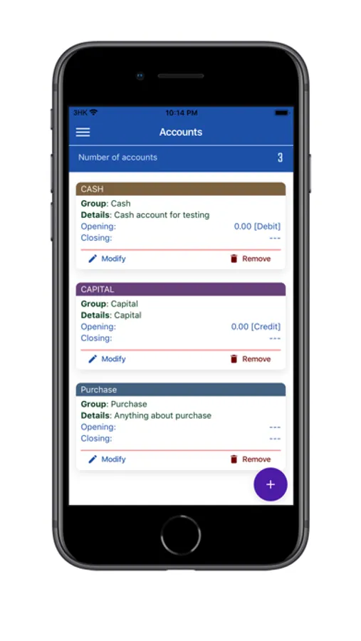 - Accounts: Allows user to create accounts for debiting and crediting.