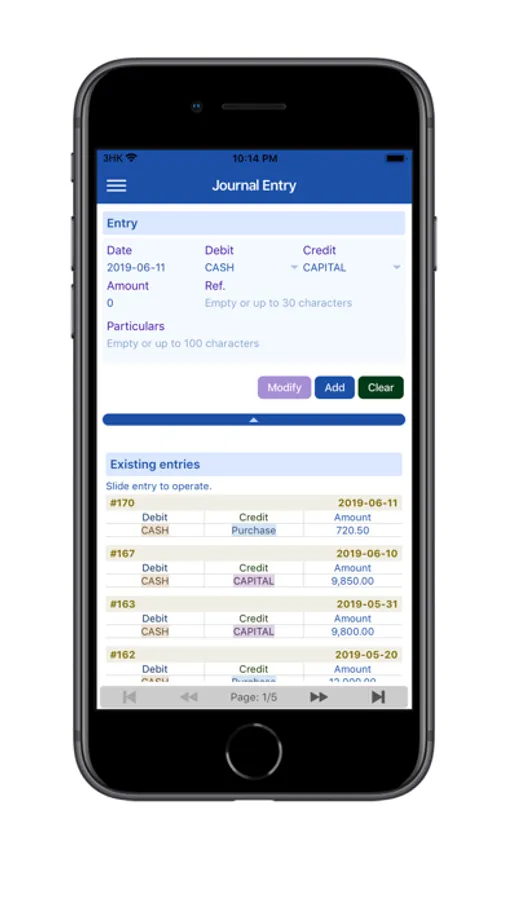 - Journal Entry: Records amount debit and credit to selected accounts.