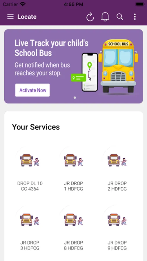 - Get notifications for each activity like bus reaching a bus stop, child boarding the bus, bus reaching school etc.