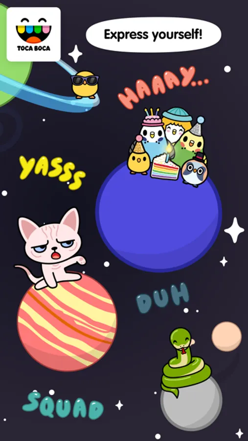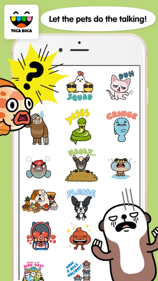Toca Life: Pet Moods is filled with funny and weird stickers to describe any mood, from pure joy to sadness, from cringe to excitement. A motley crew of cats, dogs, sloths, and even a happy poop will help you set the tone for any message. Texting with stickers has never been this playful!