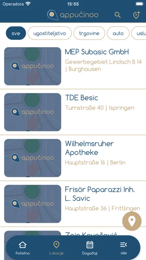 Jedan od ključnih ciljeva Appučinoo aplikacije je omogućiti privatnim korisnicima jednostavniji put do različitih djelatnosti i usluga s njihovog govornog područja. Bez obzira jeste li u potrazi za restoranom koji poslužuje autentične nacionalne specijalitete, frizerskim salonu koji razumije vaše posebne zahtjeve za njegu kose ili trgovinom s proizvodima iz vaše domovine, Appučinoo će vam pružiti sve potrebne informacije o tim lokacijama, uključujući kontakte, radno vrijeme, ocjene korisnika i upute za dolazak.