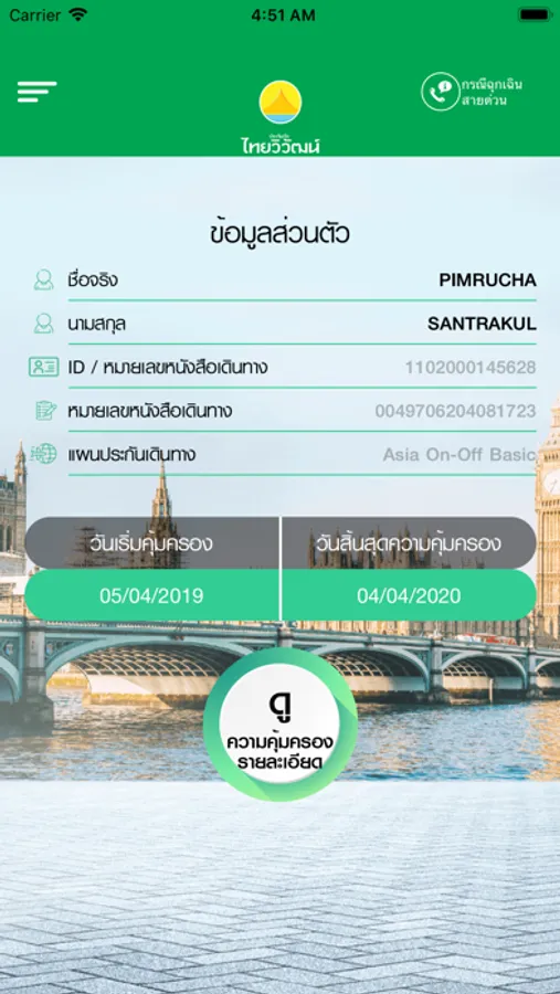 สามารถแสดงสถานวันใช้งานคงเหลือ และตรวจสอบความคุ้มครองได้บน