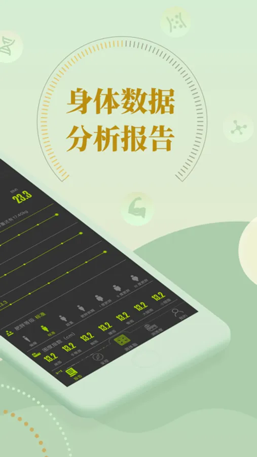 1、体脂管理:利用BIA生物电阻技术的智能体脂秤,科学检测身体体重、BMI、体脂率、肌肉率、水分、基础代谢等数十项身体数据,轻松管理身体内在健康。