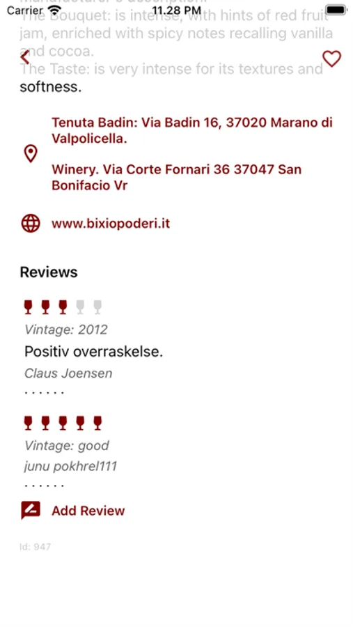 The app is an overview of all the Amarone wines that have been produced for the last 10-15 years.