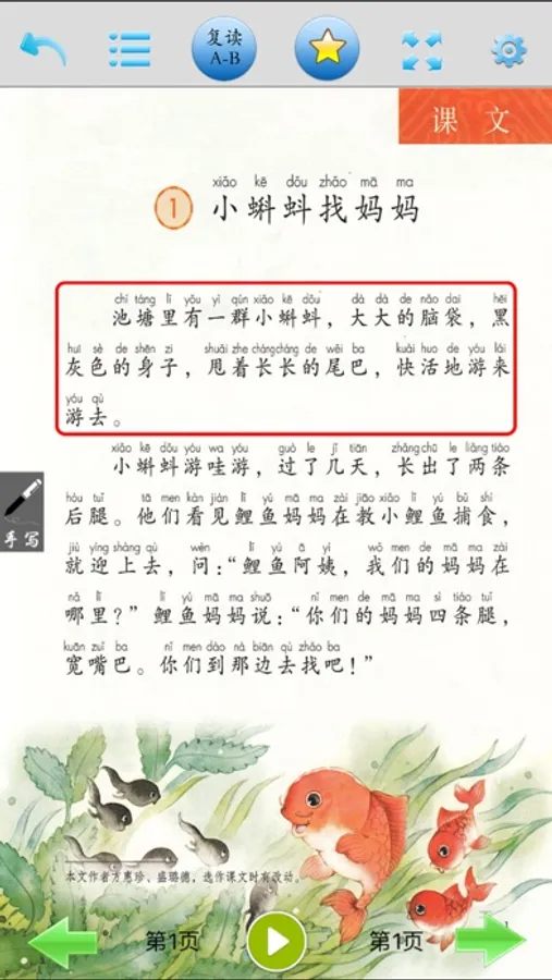 应用不仅可以像普通点读机一样可以点哪里读哪里,还能设置读完一句自动读下一句。
