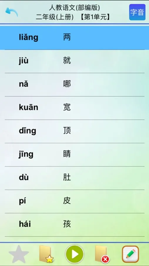 应用里是人教小学语文(部编版)二年级上册和下册课文和生字供学生学习。