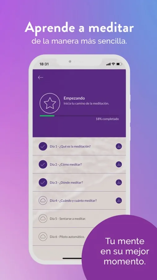 Programas de meditación en torno a temas específicos, por ejemplo con el programa “Empezando” en el que aprenderás a meditar en 16 días y otro programas como “Filosofía Mindful” sobre la práctica de mindfulness, “Alcanza tus sueños” o “Duerme mejor”.