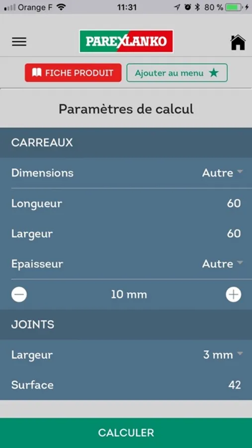 ParexKonso est une application mobile pour calculer vos consommations de mortiers, de joints, et de mastics … de la marque Parexlanko !