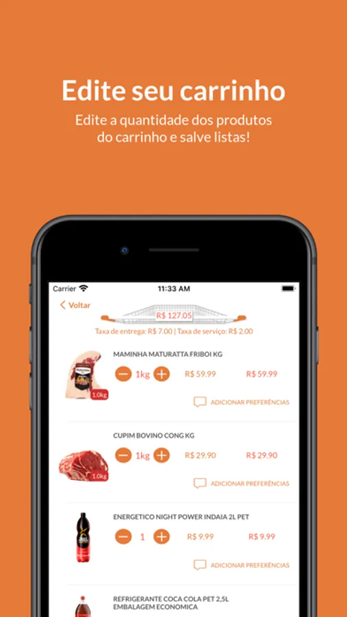 • Adicionar produtos no seu carrinho com um simples tocar e arrastar.