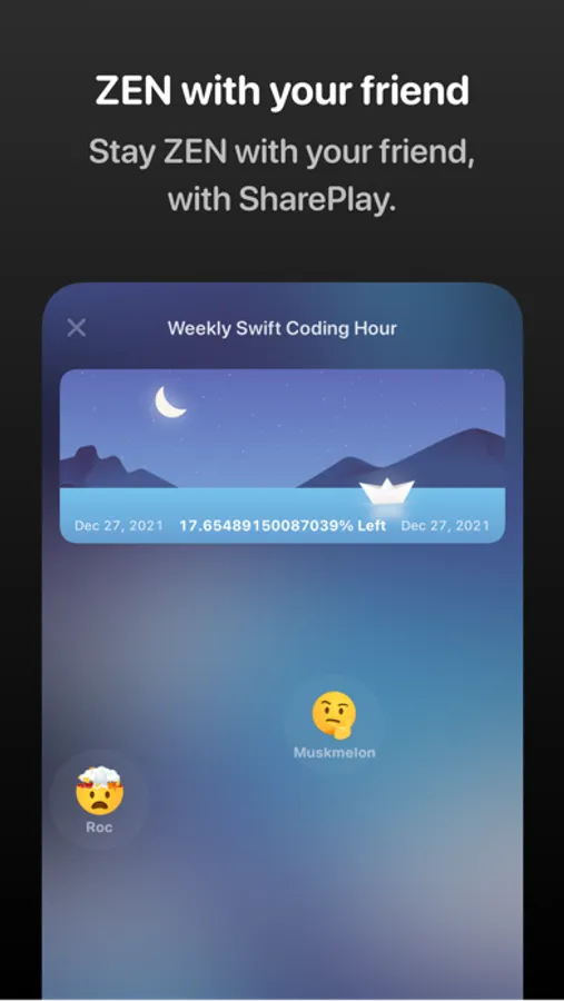 X Progress includes a carefully designed ZEN mode, and supports iOS “SharePlay” feature, so you can share events or countdown progress with your friends, to stay focused together.