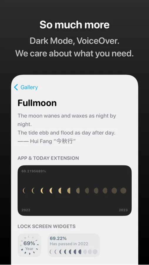 X Progress supports iOS home screen Widgets. You can set individual events and themes for each Widget to check your most cared event at any time.