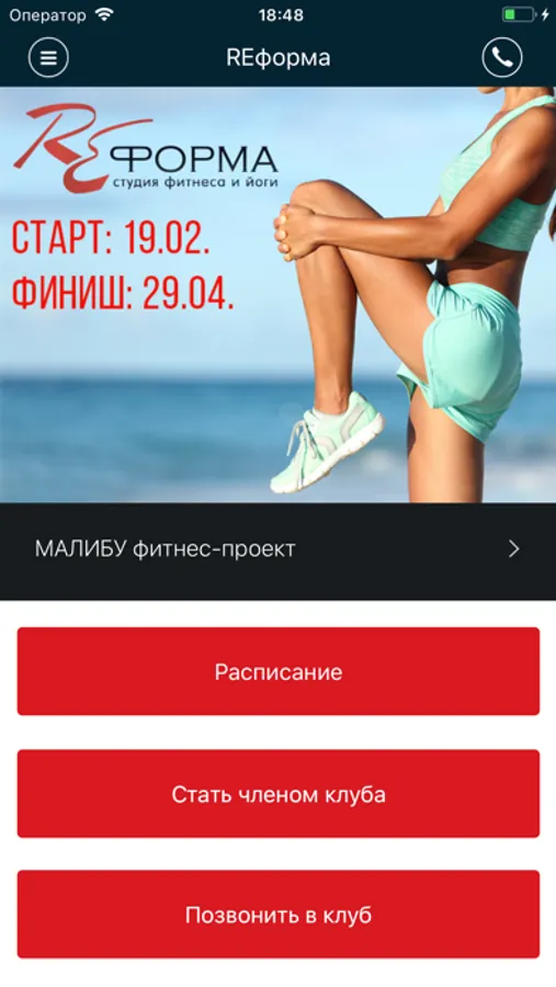 Устанавливайте наше мобильное приложение и будьте всегда на связи с REформой! Добро пожаловать в увлекательный мир здоровья, фитнеса, йоги, краcоты и хорошего настроения!