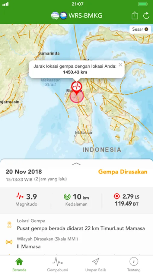 10. Info MMI daerah yang merasakan gempa untuk gempa dirasakan