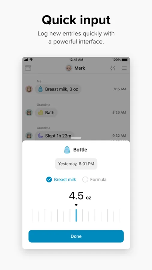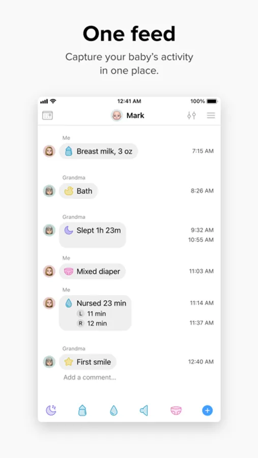 Baby Steps is the most efficient app to log your baby’s daily activity. Don’t rely on your memory or scribbling on pieces of paper; organize everything automatically in a timeline that can be shared between parents, caregivers, daycare, nannies, and anyone else who needs it.