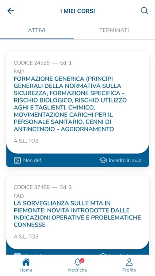 - ricevere notifiche sui corsi o sulle news dell'Azienda direttamente sul proprio dispositivo