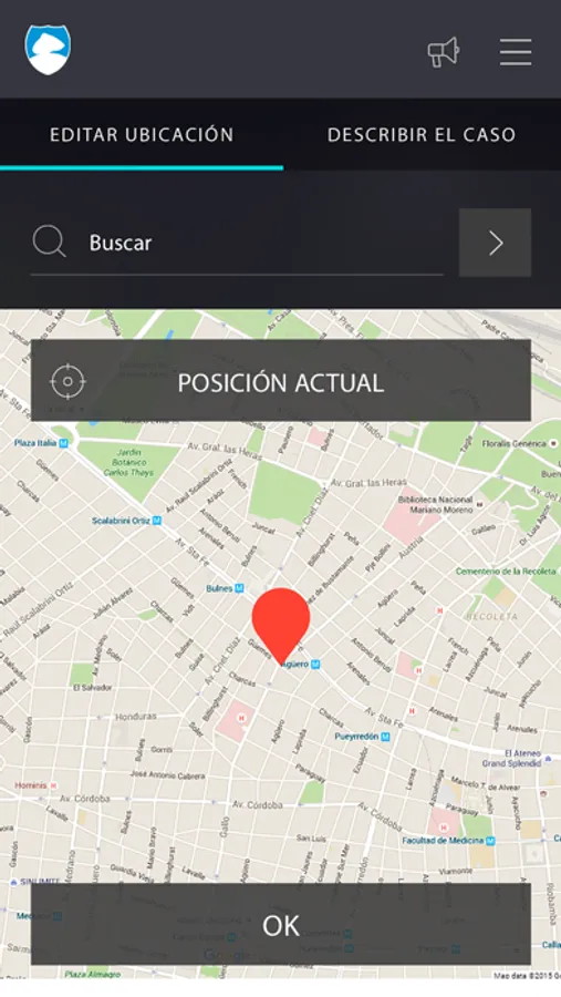 Si el hecho a denunciar lo permite, no siendo de extrema urgencia, la aplicación brinda además la posibilidad de editar en forma manual la geolocalización y añadir un texto descriptivo del caso, como información adicional que el usuario considere relevante.