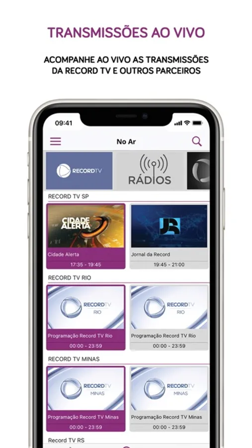 - Íntegra das novelas, séries, realities, programas de entretenimento e jornalismo Record TV