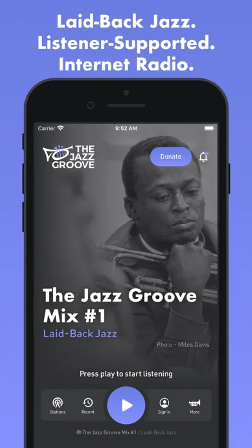 Jazz that’s Laid-Back. Cool. Elegant. That’s The Jazz Groove (JazzGroove.org); a listener-supported, non-commercial public radio service specializing in Laid-Back Jazz, offering five unique jazz radio stations. From an incomparable collection of 10,000+ jazz recordings, each hour of music is hand-selected, meticulously-curated and artfully-blended by professional musicologists. Choose from three different Laid-Back Jazz stations as well as stations dedicated to Vocal Standards and Smooth Jazz. Enjoy best-in-class audiophile fidelity plus options to silence fund drives and promotional announcements for a pure music, non-commercial experience.