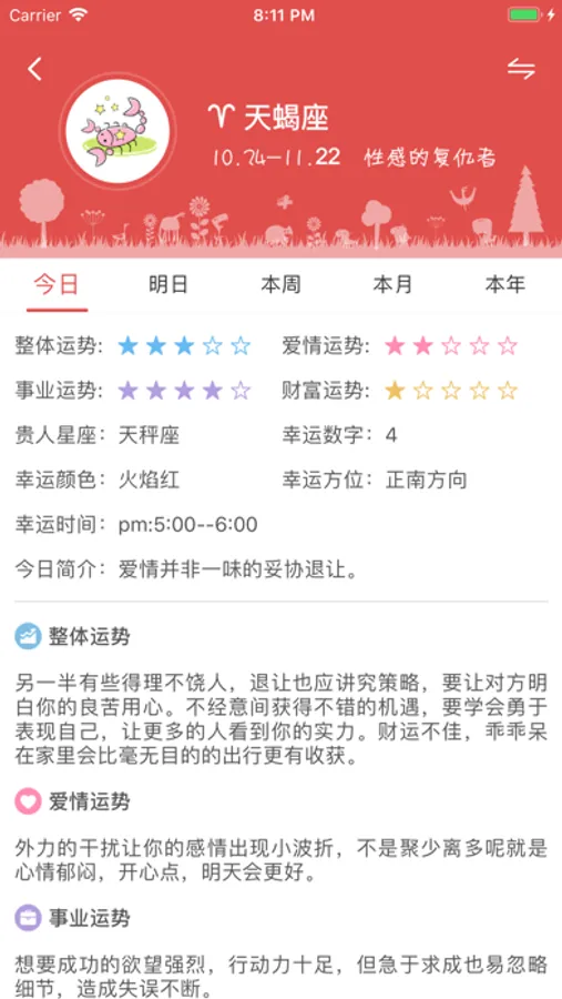 周易算命是一款以传播中华传统文化为宗旨,为用户提供切实生活指导,集日历信息、黄历查询、节日查询、许愿墙等各种功能一体,以成为用户的贴心生活助手为己任的互联网传统文化手机APP。