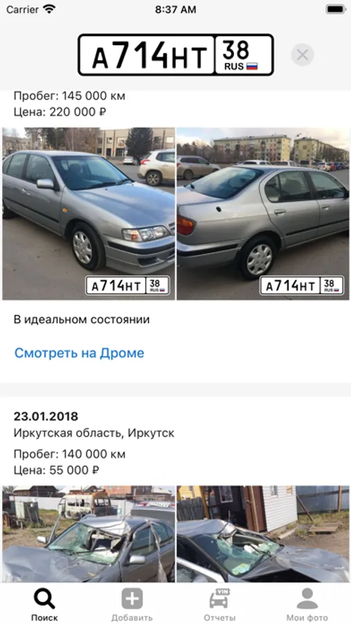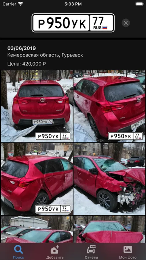 Установите «Номерограм». Введите в поиск гос номер, и мы найдём вам историю продажи машины или отдельные её фото из Интернета. Покажем даты размещения объявления, цену и пробег.