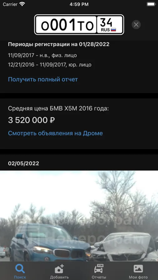 «Номерограм» мониторит не только доски объявлений, но и другие ресурсы. Поиск по номеру может помочь вам увидеть фото ДТП или процесс ремонта автомобиля.