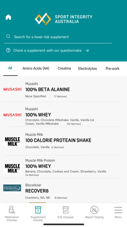 - a database of supplements sold in Australia to help you find a low risk product and reduce your chance of testing positive