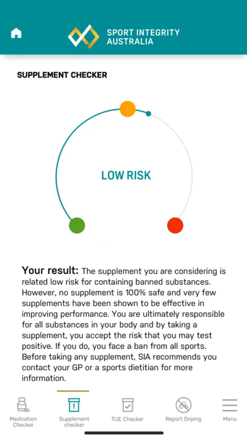 - a world first supplement tool to assist you in determining whether the use of a supplement is worth the risk