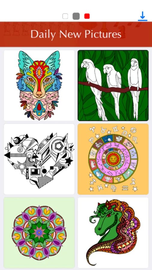 The REAL coloring book! Paint mandalas, patterns, animals, florals, and thematic images from our artists!